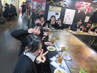 夕食は広島駅前にある「お好み物語」です。各店舗に分かれてお好み焼きを食べました。