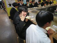 ②その後、本校の購買をお願いしている「滝乃金田屋」さんの金田社長に対して、生徒会役員が調査結果について説明し、お弁当や新規メニューの導入など、意見交換したところです。