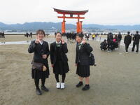 1日目の見学地は広島の宮島です。広島駅で下車したのちバスでフェリー乗り場まで向かい、そこからフェリーに乗って宮島に着きました。