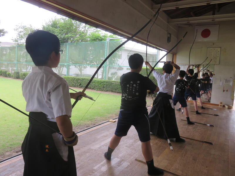 中学弓道部では、仲間同士で声を掛け合いながら、互いに高め合って練習に励んでいます。また、高校弓道部と活動を共にしているため、高校生の射を見ることができ、多くの刺激を受けています。週に1度外部から先生も来てくださっており、自分の技術を伸ばすための環境が整っています。