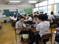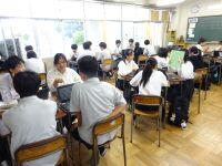 1学期に個人で行った「地域の文化と伝統」の研究から,特によい研究をした各クラス代表の生徒の発表を聞き,どう工夫すればもっとよりよい探究になるのか,テーマ設定の工夫などを協議して学びあいました。