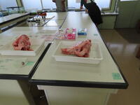 豚の頭部を解剖します。眼球の中をのぞいてみませんか?脳の展示もあります(体験も?!)