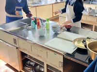 2年生2名、1年生4名で活動しています。活動場所は調理室、活動日は第2月曜(16:20〜18:00)で、みんなで楽しく料理やお菓子作りをしています。自分たちで作りたいものを提案し、レシピをみながら作っています。今までに、チーズハットク、お好み焼き、七夕ゼリーなどを作りました。「料理をやってみたい」「お菓子を作ってみたい」と思ったら、ぜひ見学に来てみてください!