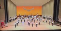 マーチングステージでは、阿佐美圭祐先生ご指導のもと『絆』をテーマに、手紙をモチーフに演出しながら、メリハリのあるドリルを披露させていただきました。毎年テーマや演出、選曲、大道具制作、照明案作成、衣装準備もすべて3年生を中心に部員達が準備しています。
