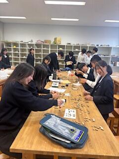 現在、建築デザイン科3年生の課題研究では、学校祭に向けて販売用の木工作品製作に取り組んでいます。