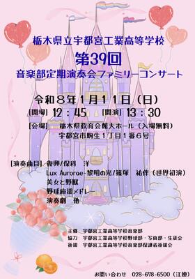 第39回栃木県立宇都宮工業高等学校音楽部 定期演奏会ファミリーコンサート を開催します!