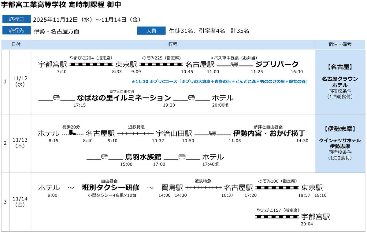 教頭先生、各クラスの担任の先生、養護の先生の引率の元、伊勢・名古屋方面を旅してきました。
