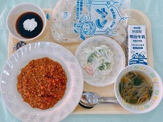 今日の主菜はあじの南蛮漬けの予定でしたが、さばの南蛮漬けに変更になりました。南蛮漬けは魚などを油で揚げて、唐辛子が入った甘酢に漬けた料理です。シルバーサラダは、春雨をマヨネーズであえたサラダです。シルバーサラダという名前の由来ははっきりとはわかっていないそうですが、給食では定番のサラダです。