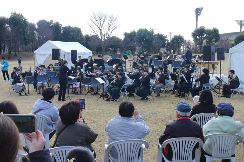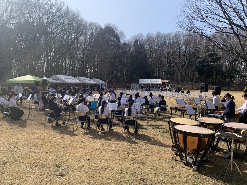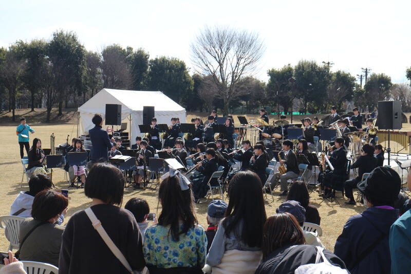 2月24日(土)に清原中央公園において、宇都宮市のイベント「清原マルシェ(きよとこ)」が開催されました。その一環のステージイベントで演奏をさせていただきました。当日は清原中学校吹奏楽部さんも参加し、互いに単独で1曲ずつ、「君の瞳に恋してる」「銀河鉄道999」を演奏した後、合同で、「アラジンメドレー」「宝島」の計4曲を披露しました。