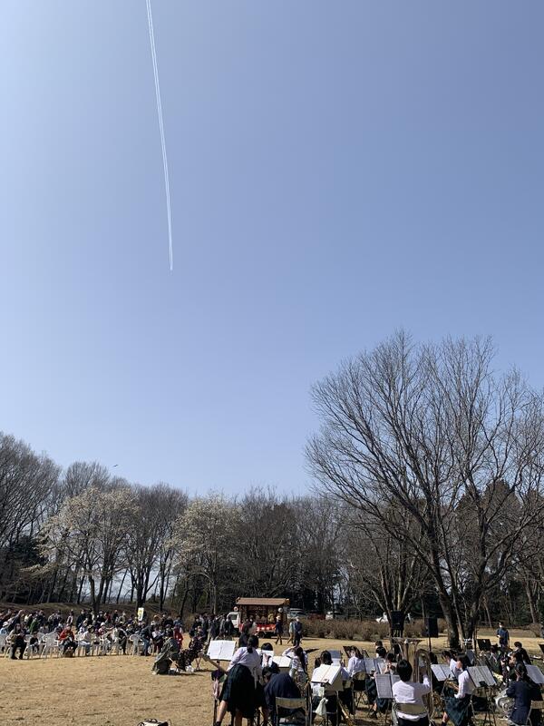 当日は、晴天で春の陽気に包まれ、「アラジンメドレー」と「花は咲く」を多くの方に聴いていただくことができました。