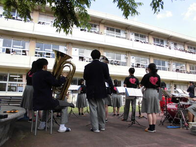 そんな中庭での演奏、学校全体が明るい音色に包まれるようでした。