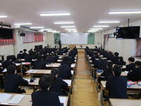 学年の概況や生徒指導、交通指導、進路状況、商業科2年次のコースについてなどの説明に加え、株式会社マイナビ西田様より進路についてご講演いただきました。
