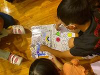 今度は色塗り。絵の具で丁寧に色を塗ります。細かい部分も根気強く取り組みます。