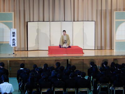 小話や短めの落語を披露してくださり、会場は早くも笑いに包まれました。落語の世界への導入として、生徒たちも自然と引き込まれていく様子が印象的でした。