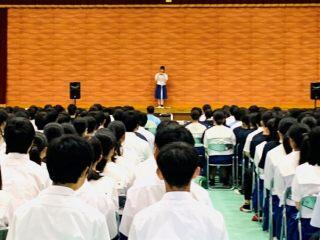 部活動総体の成績や今後の行事についてのお話と「附属中学校の最高学年」として連帯感をもって取り組み、各自の成長の糧にしてほしい、また中高一貫校の「折り返し地点」を間もなく迎える中学3年生の2、3学期は高校への接続を充実させるために重要な時期とのお言葉をいただきました。