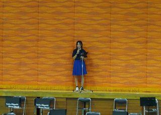 「今日は待ちに待った合唱コンクールです。わたしは昨夜楽しみ過ぎて夢の中でも歌っていました。朝も放課後も練習に励み、どのクラスも歌声に磨きをかけてきました。中学生は高校生の美しい歌声を聞くことができます。どのクラスも最優秀賞を取れる可能性…ありえない…!?ありえるでしょ!?この合唱コンクールが素敵な思い出になるように、十二分に力を発揮できるよう、全力で楽しみましょう!」