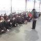 (1) 津軽三味線の迫力ある演奏でスタートです。 (2) 希望者(先生は生徒からのご指名)を募り、