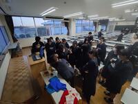 (講演会後、沼野さんが現地で仕立ててもらったサリーを生徒が試着する様子)