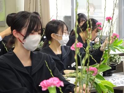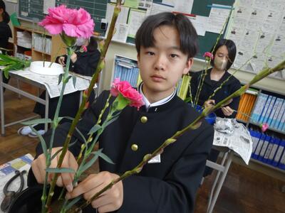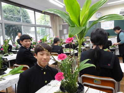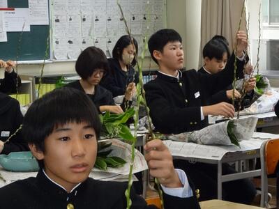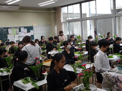 そんな中で、1年1組は伝統文化教室を公開し、華道に挑戦しました。