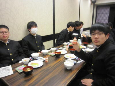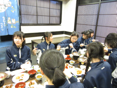 お腹いっぱい食べました。明日はいよいよ班ごとに京都見学です。