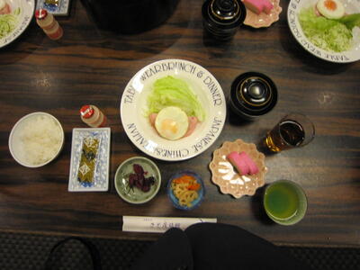 旅館に到着しました。待ちに待った夕食です。
